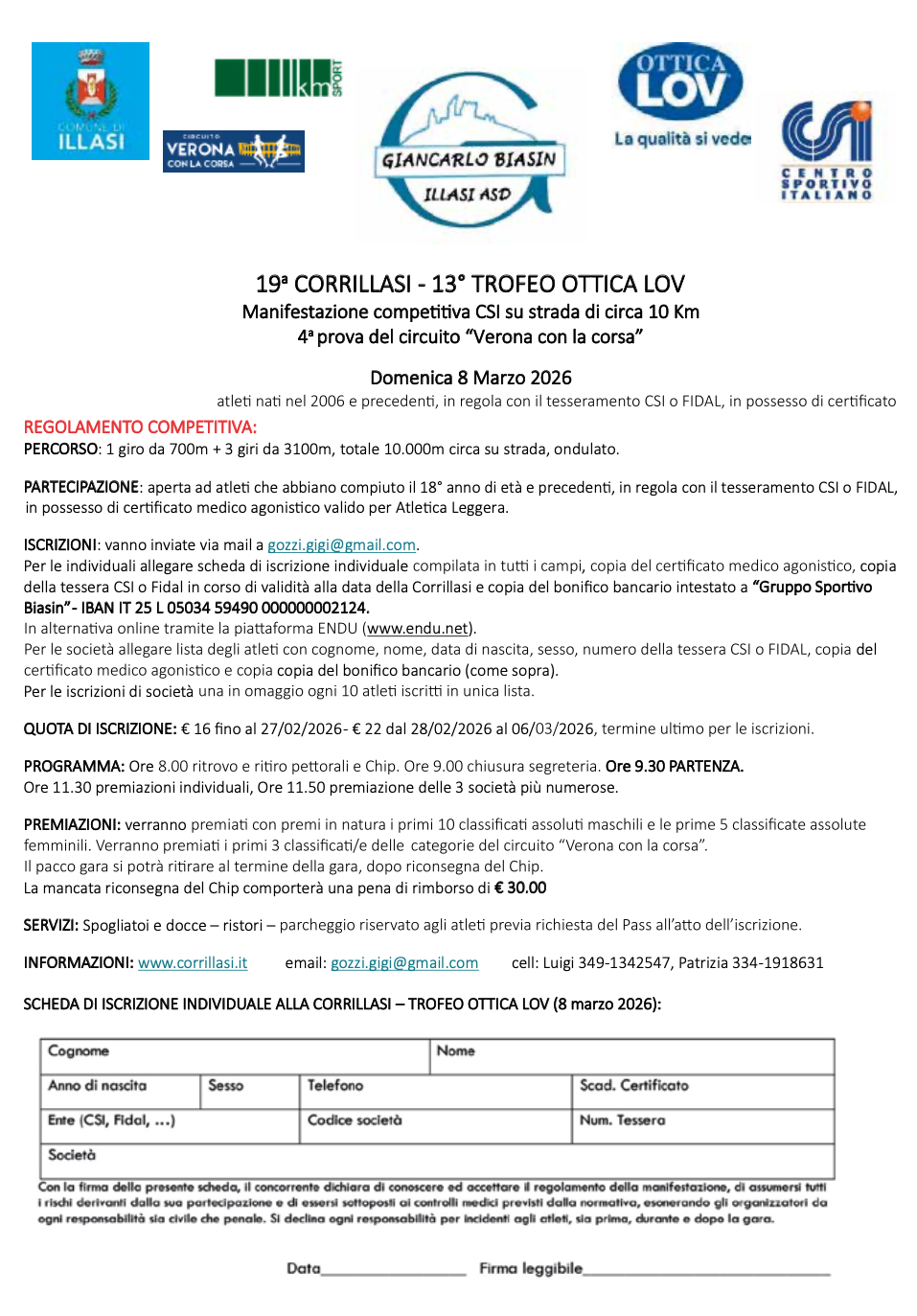 19a Edizione di CORRILLASI, 8 Marzo 2026
